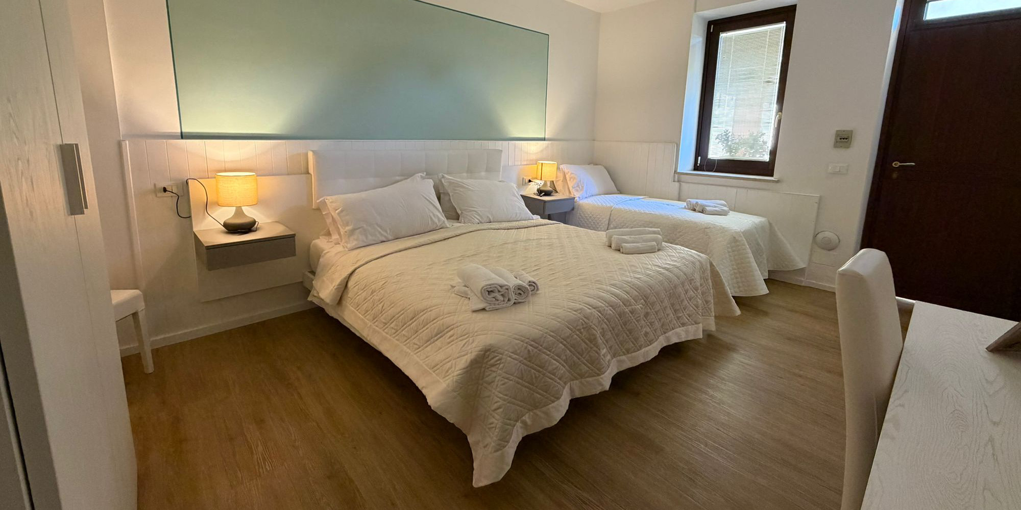 Nello stile di tutta la struttura, abbiamo pensato anche per queste camere ad arredamenti dai colori caldi e accoglienti, accompagnati da note di colore, pavimento in legno, pareti dalle tonalità luminose e dettagli che renderanno la vostra permanenza nella nostra struttura un momento piacevole e sereno della vostra vacanza.